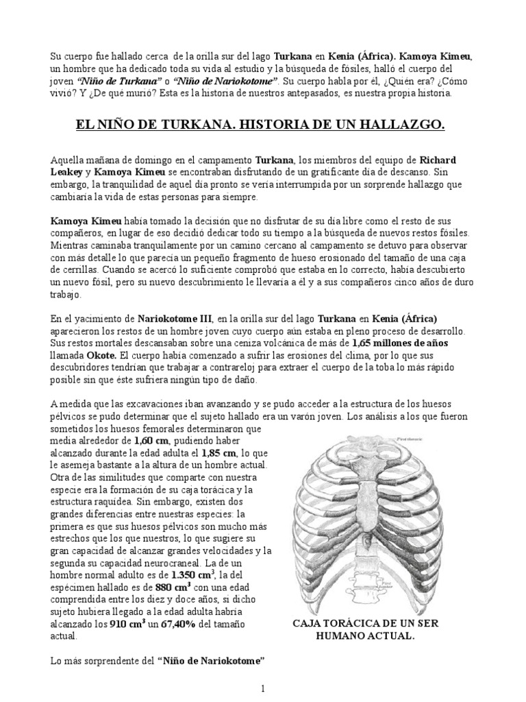 Un asombroso descubrimiento, que fue recordado hoy por google, impactó al mundo en 1984, cuando investigadores encontraron los restos óseos de un niño de aproximadamente. Solo le faltaban las manos y los pies. Se trataba de un esqueleto casi completo de un adolescente de unos 12 años. The difficulty, and also the satisfaction, of making a family genealogical tree and going back centuries in our ancestors can give an idea of the magnitude of what the discovery, 17 years ago, of our best preserved ancestor supposed: Se trata de un esqueleto casi completo — tan solo faltan manos y pies— correspondiente a un joven homínido que falleció entre los 11 a 12 años de edad hace aproximadamente 1,6 millones de años (inicios del pleistoceno).
